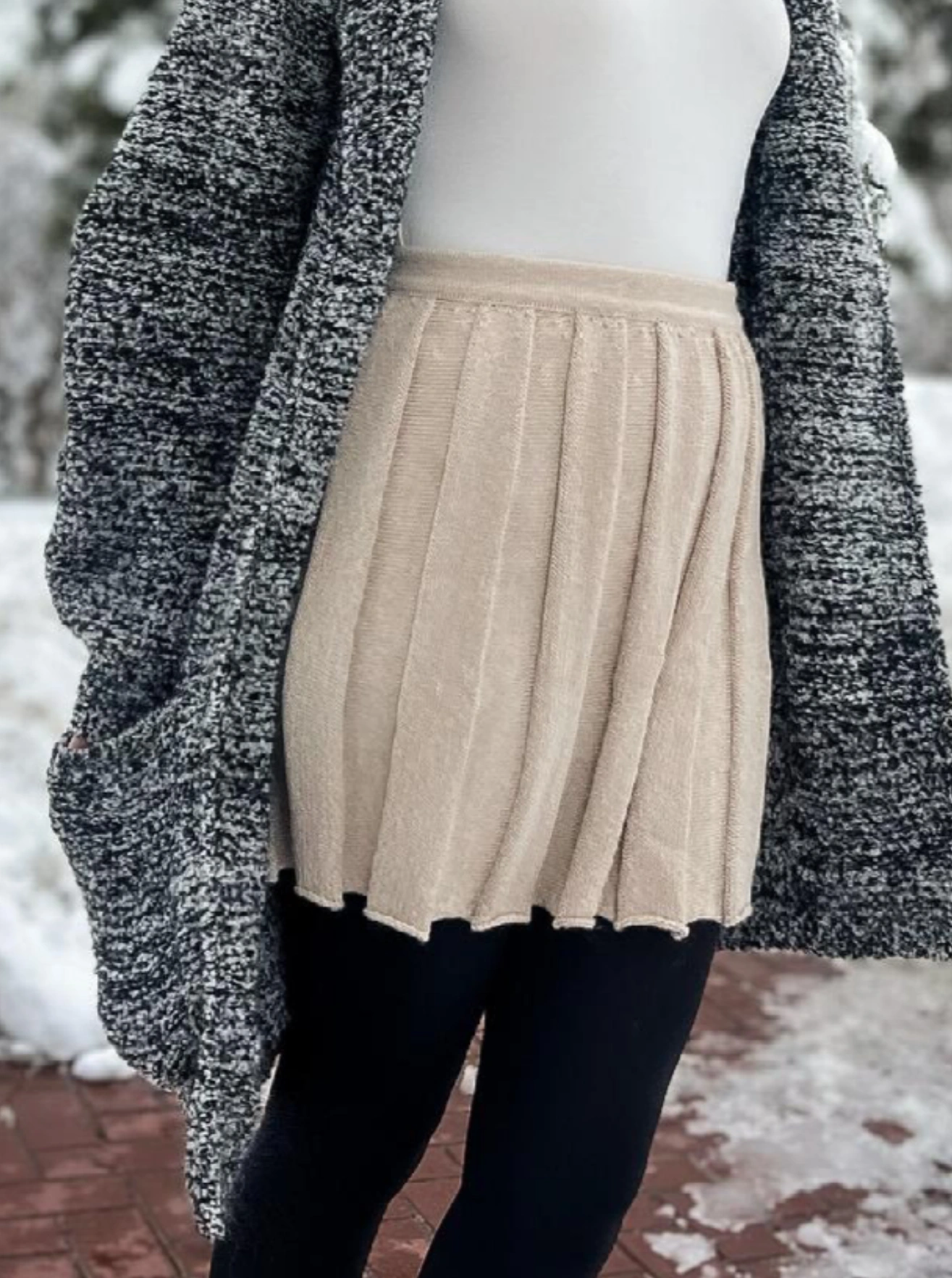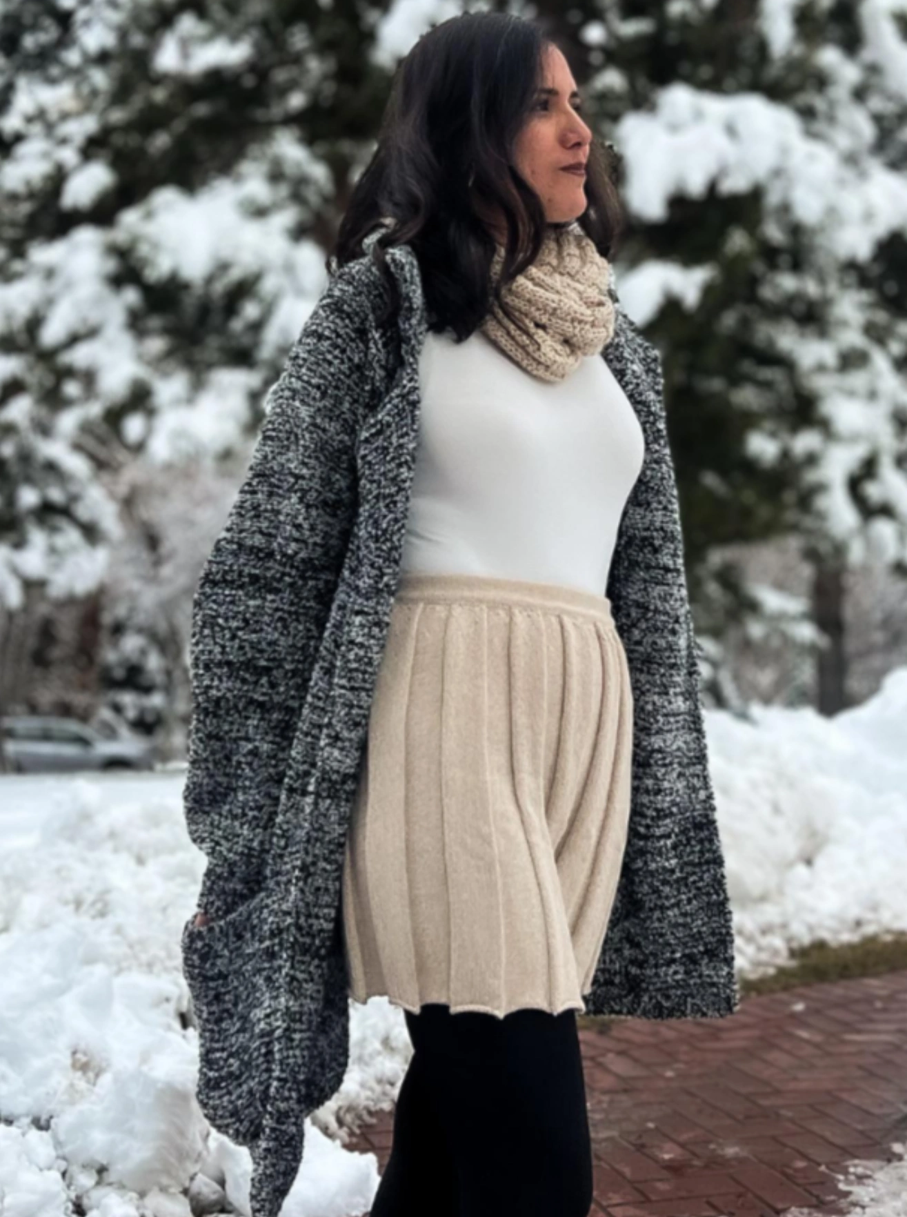 Esta falda de punto rib está confeccionada con 100% alpaca baby, un material suave, ligero y extremadamente cálido, ideal para mantenerte cómoda y elegante. En un tono beige clásico, la falda es fácil de combinar con diferentes prendas, lo que la convierte en una opción versátil para cualquier temporada. Su diseño rib proporciona un ajuste cómodo y favorecedor, brindando un toque sofisticado y natural a tu look.